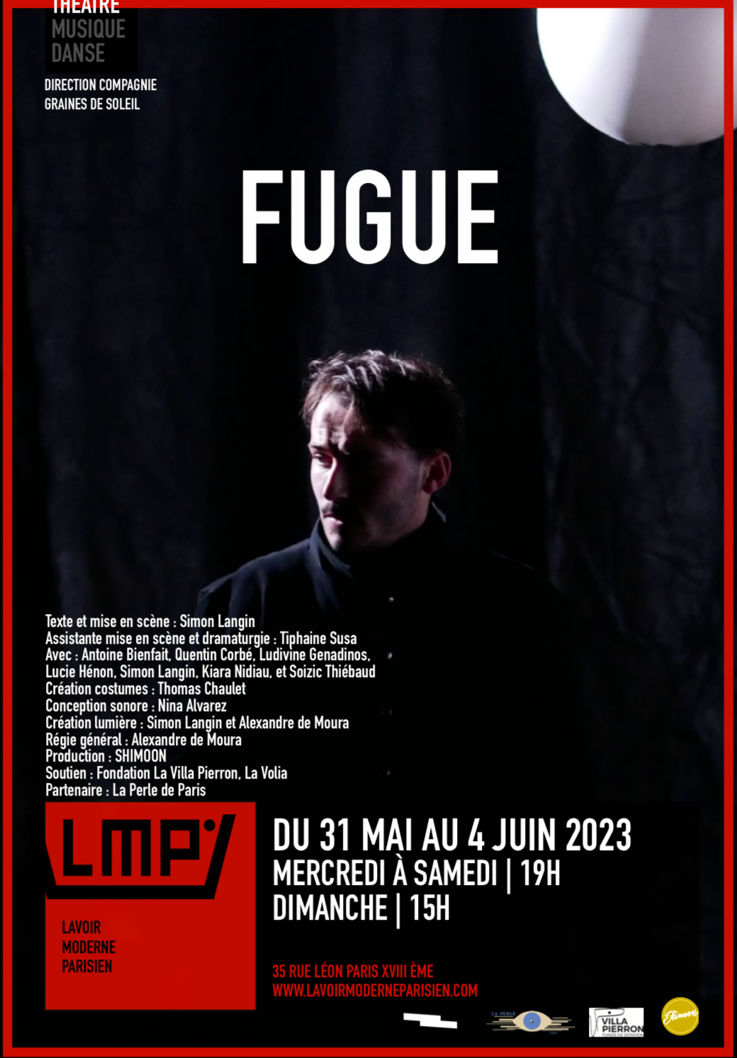 Au-delà de l’acte insouciant d’un adolescent en crise, la FUGUE est une nécessité ; un moment de liberté qui advient d’un besoin d’expression. L’expression d’une pulsion, qu’elle soit cachée ou anticipée. A travers FUGUE, nous cherchons à fuir ce qui nous suit. Des idées, des à priori, des caractères ?